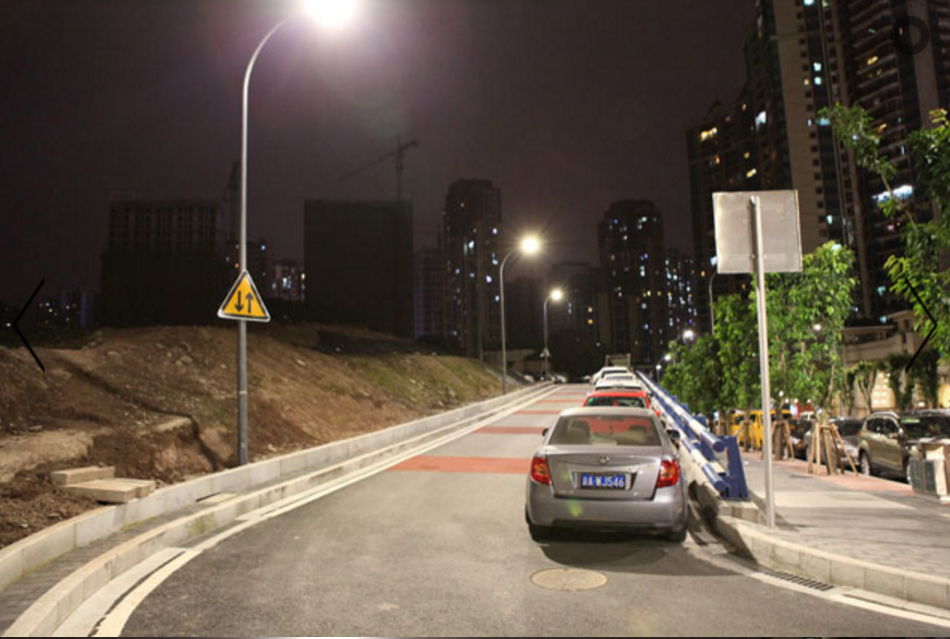 重慶綠色科技開發有限公司在重慶市渝中區錦程路實施了“十惠牌”60W LED智能路燈綠色照明工程,主要具有路面燈光清晰度高(顯指70)、均勻度好、光效高等特點,該燈具性能指標均領先全國同類產品,采用我司自主研發的專利技術“互聯網+多色溫LED路燈、隧道燈六遙(多色溫、遙調、遙測、遙控、遙視、遙信)控制系統”(專利號:2015204938054)遙控可實現智能控制。本產品是我司利用多項自主專利技術(專利號:201320842388、201320028126、2015204938054)研發、制造的LED智能路燈產品,并已獲得“重慶市高新技術產品”、“重慶市市政行業新技術認證”。案例實景照片展示如下(2015年01月25日通過竣工驗收):