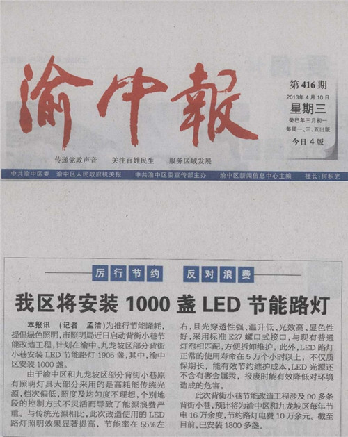 重慶市九龍坡區九龍花園背街小巷“‘十惠牌’背街小巷一體化拆裝方便的LED專用節能路燈”改造項目