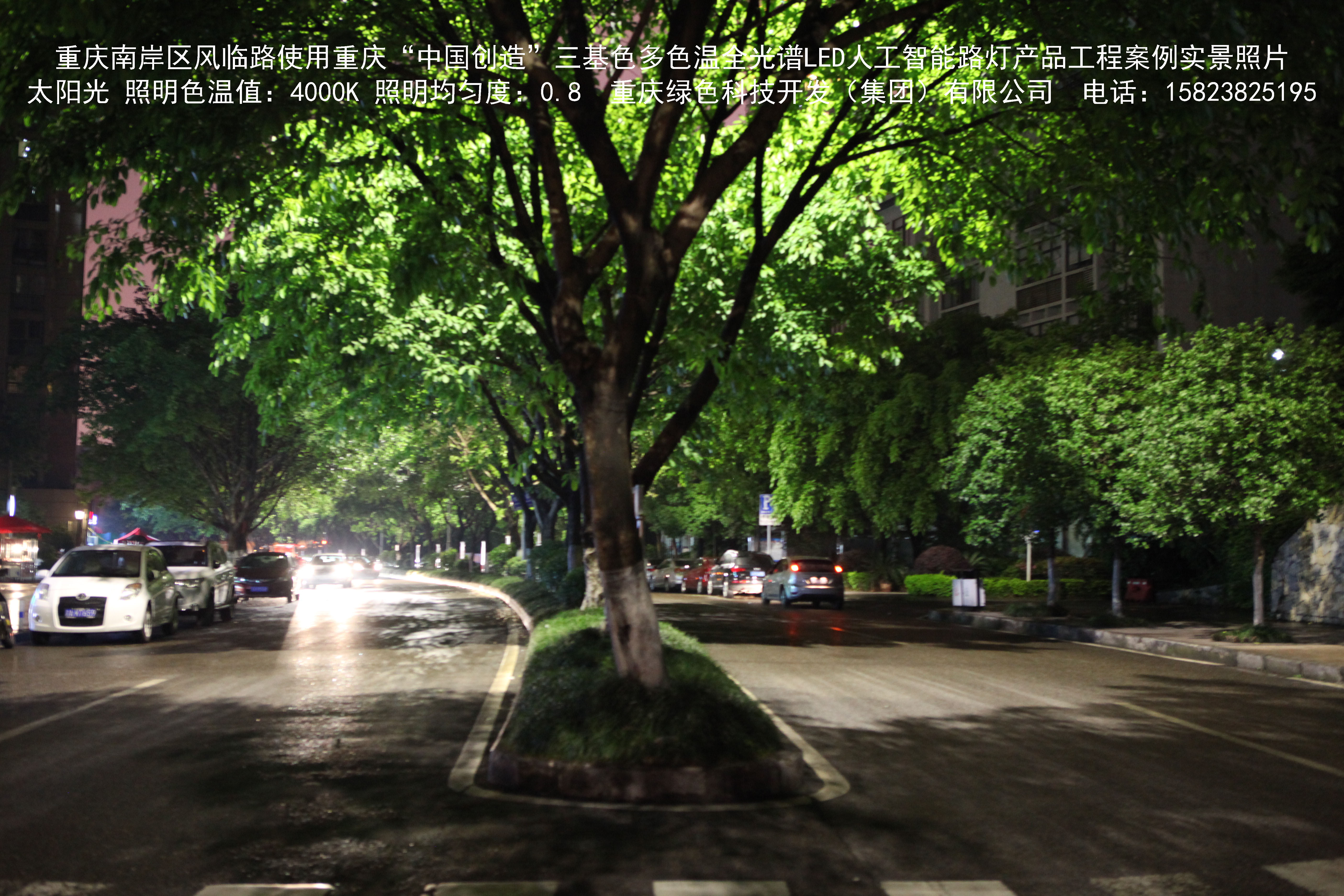 2016年3月,重慶市南岸區路燈管理處使用我司自主研發制造的重慶“中國創造”三基色多色溫全光譜LED人工智能路燈系列產品,實施了市政設施品質提升工程。該工程已全面竣工。工程實施后,極大地提高了城市照明清晰度、燈光均勻度、舒適度。通過智能終端實現單燈感知、線纜防盜報警,與原高壓鈉燈相比,節能率60%以上,有效解決了關閉控制回路或間隔關燈方式造成的照明暗區,確保行人和車輛通行的安全,實現城市路燈照明系統的智能化管理,推進了智慧城市建設。