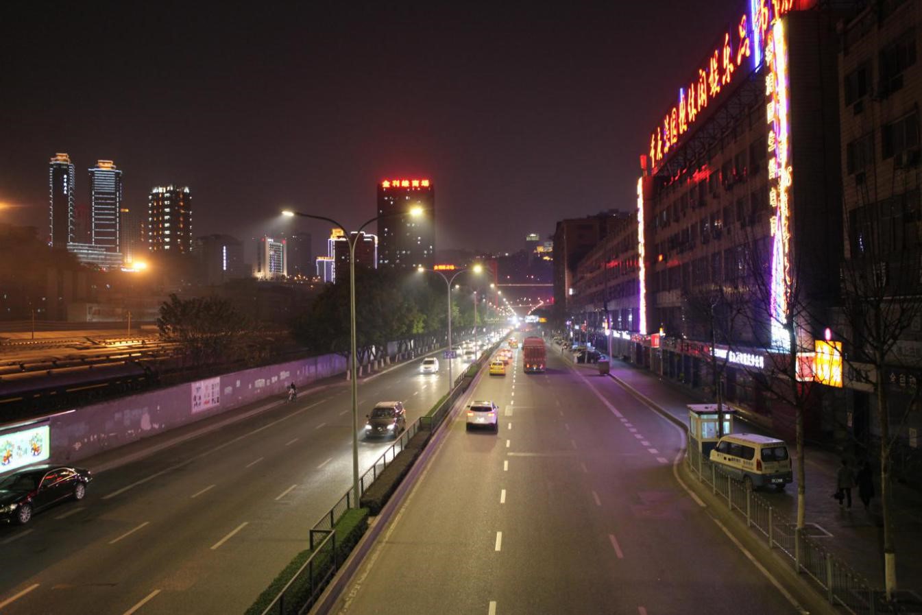 重慶市渝中區菜袁路實施的物聯網多色溫防霧霾LED人工智能路燈