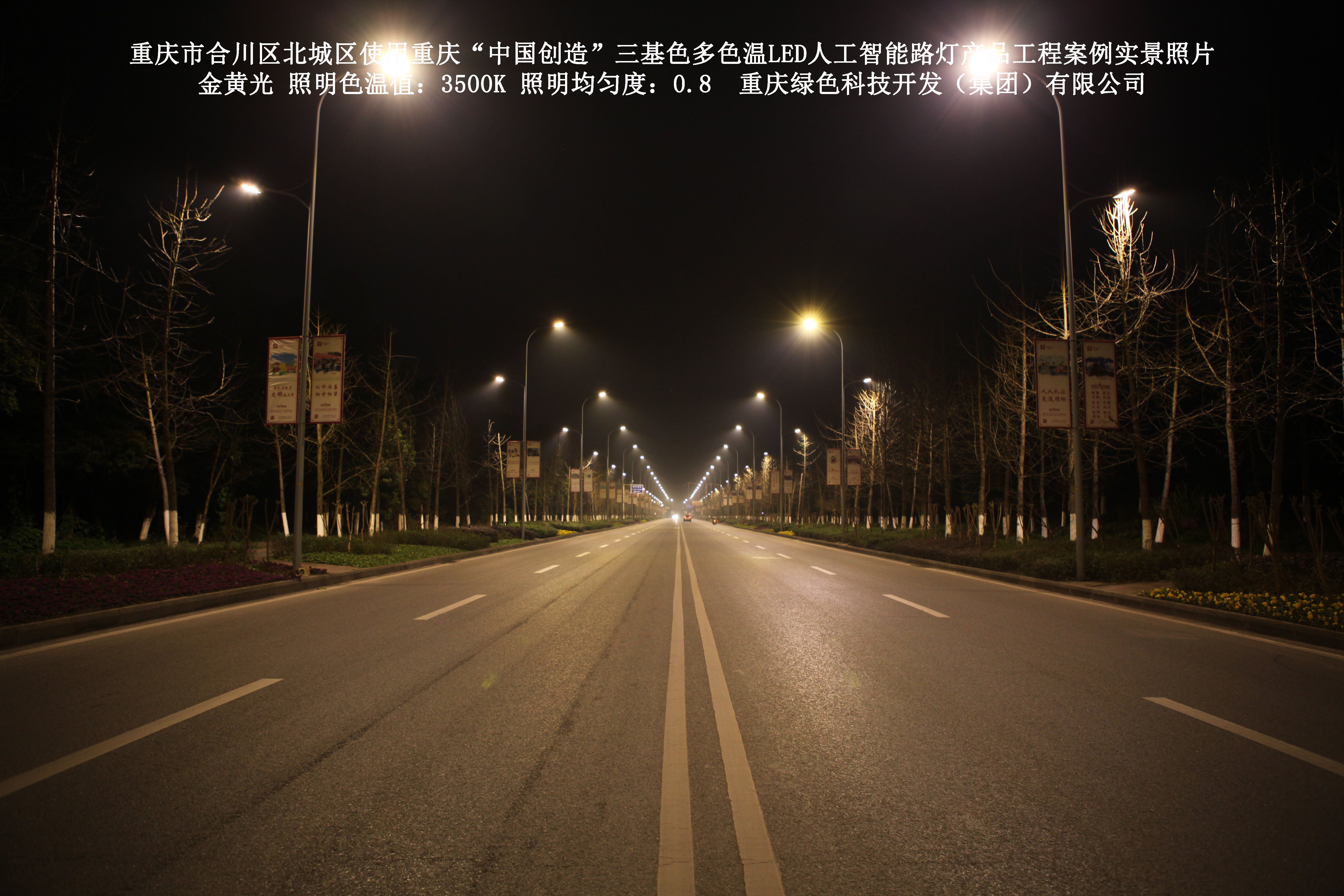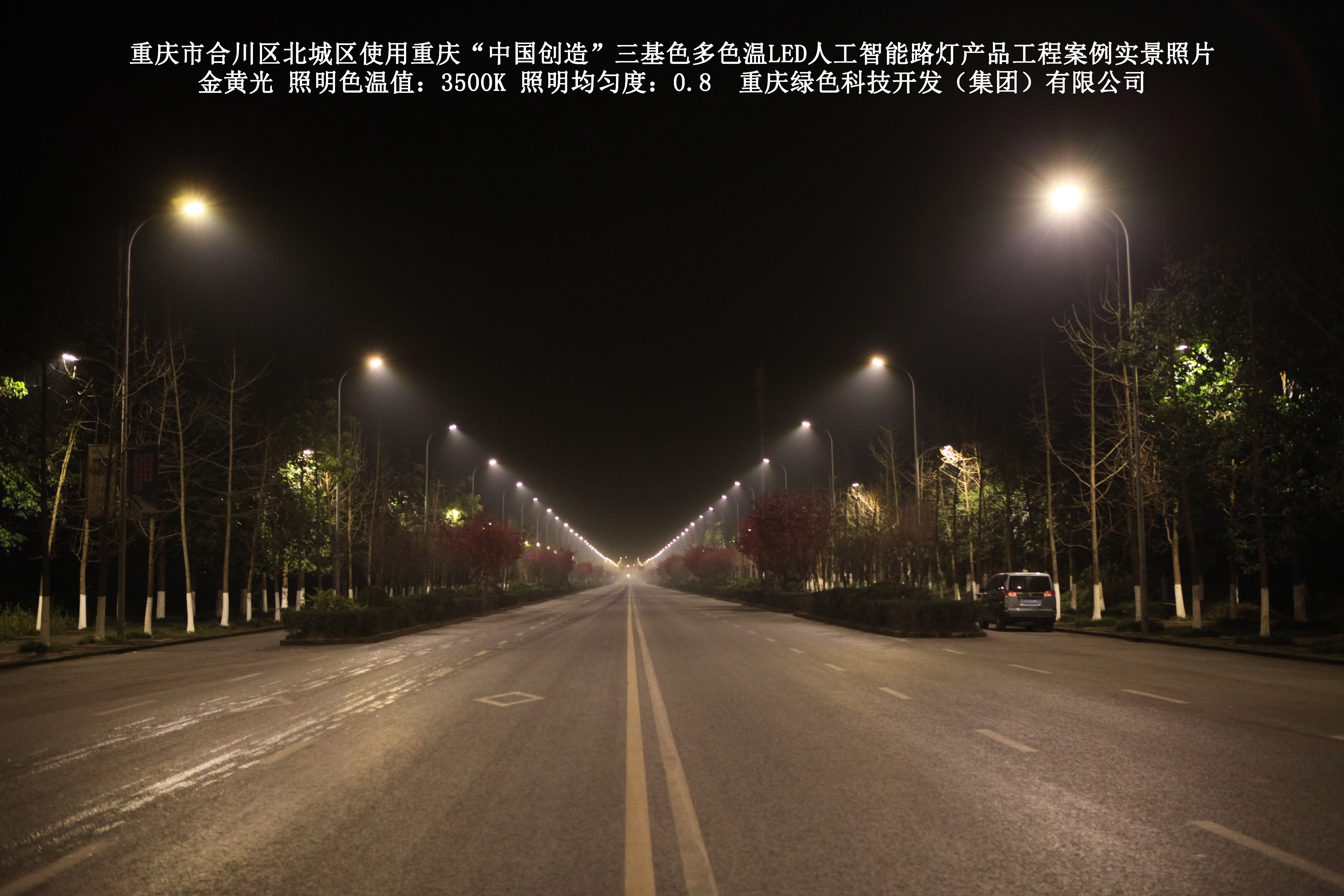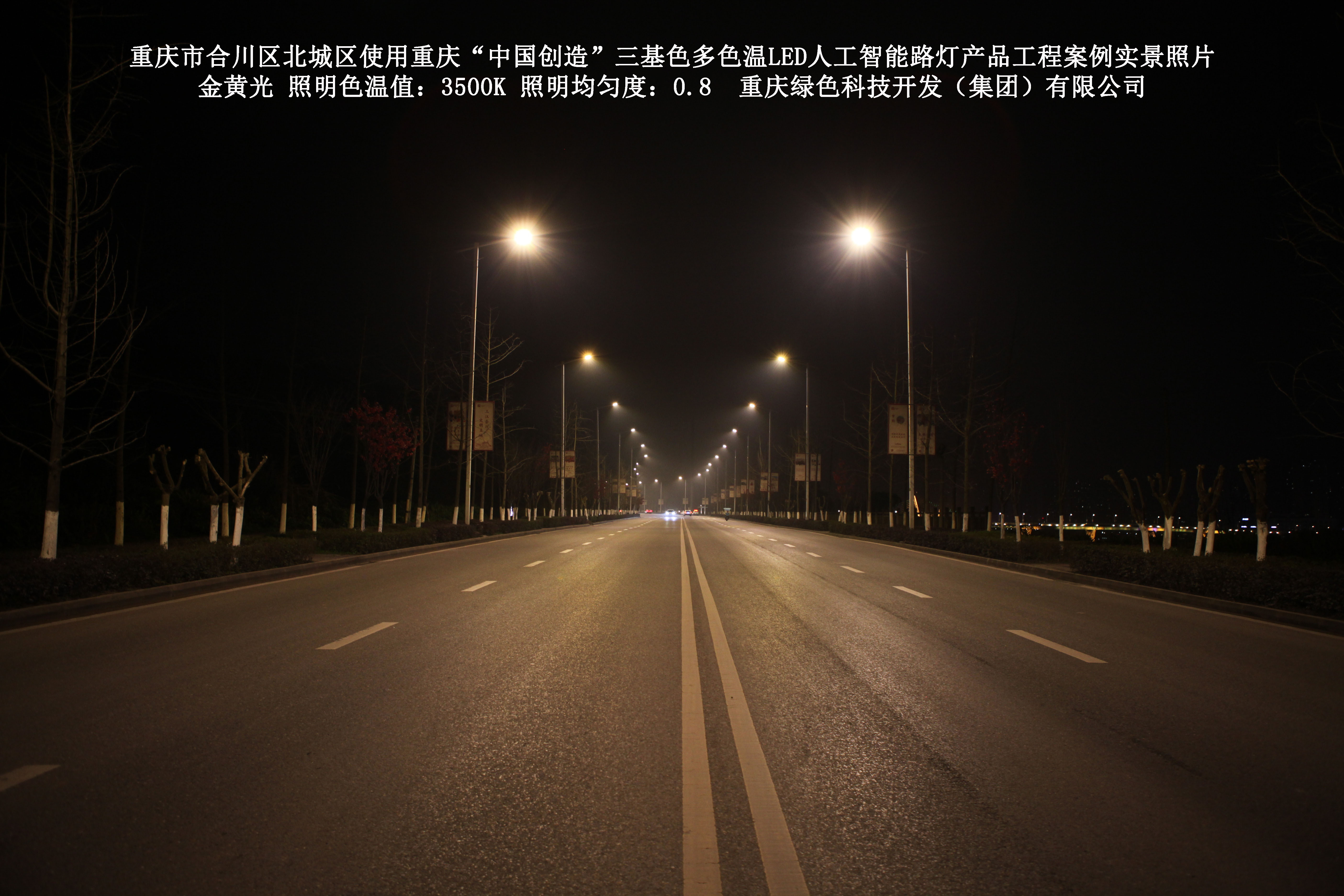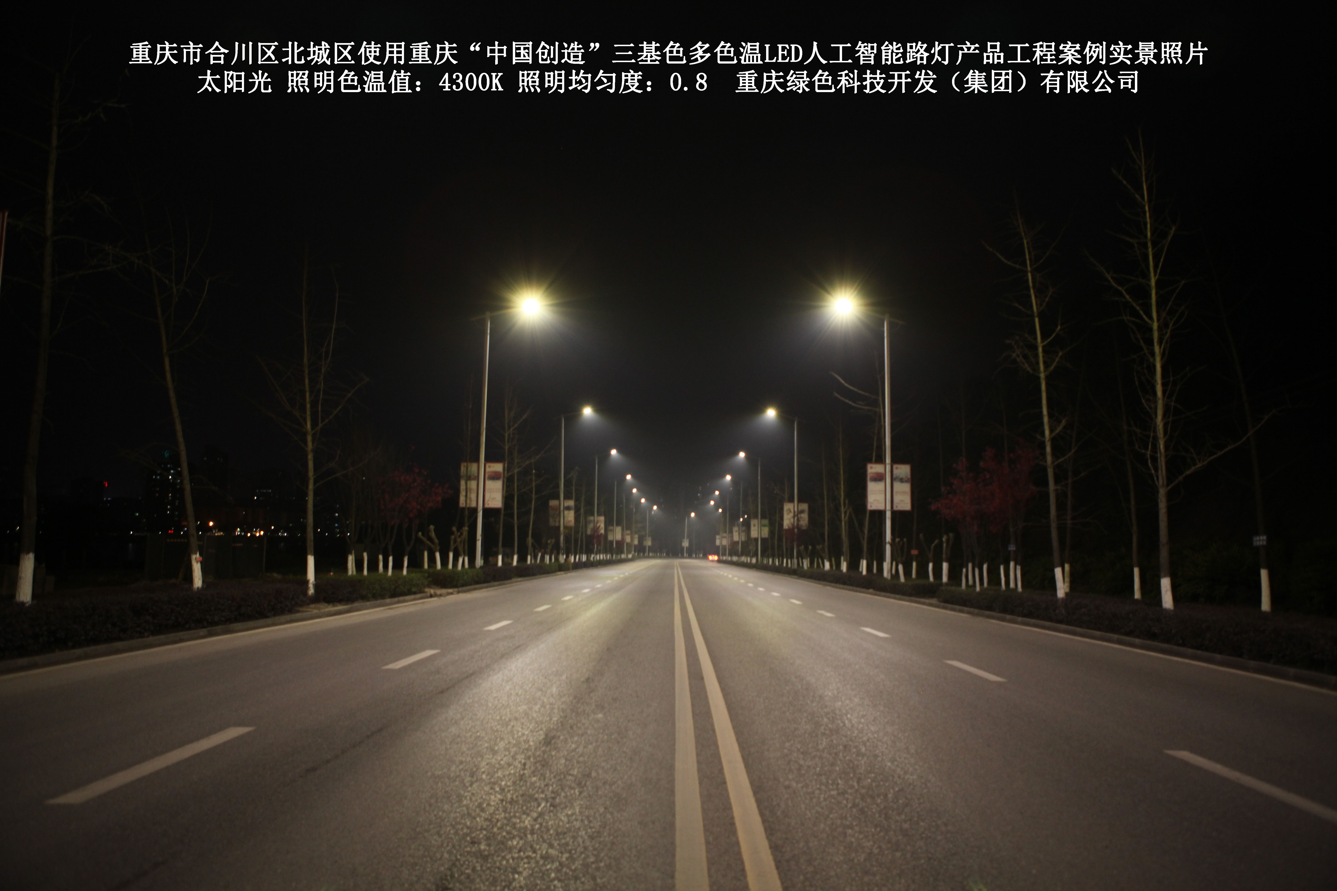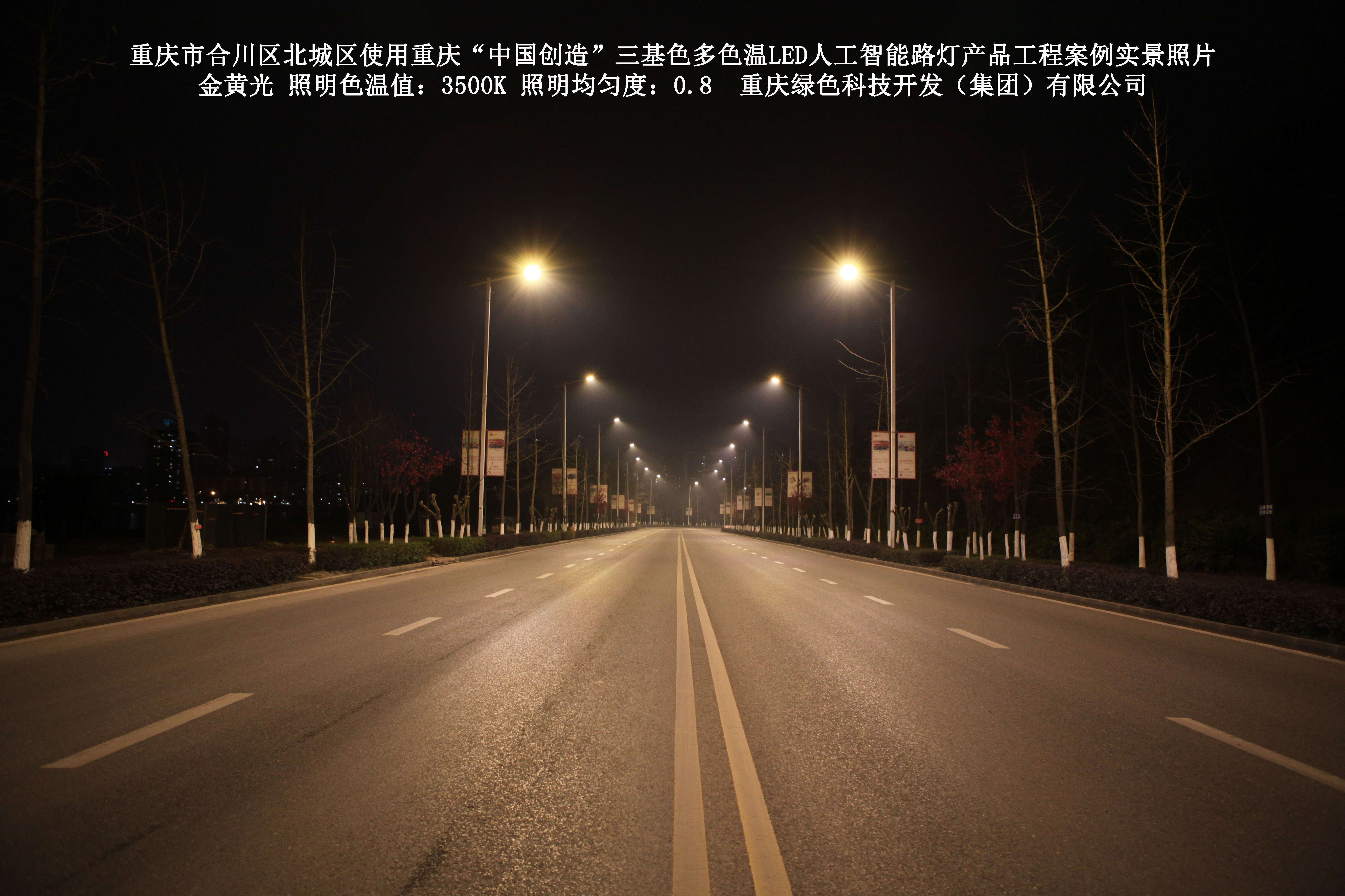 2019年1月,重慶市合川區城市管理局使用了我司研發制造的重慶“中國創造”三基色多色溫LED人工智能路燈5144盞,對合川區北城區實施了綠色照明科技節能改造工程,該工程已全面竣工。工程實施后,極大地提高了合川區北城區城市照明清晰度、燈光均勻度、舒適度。通過智能終端實現單燈感知、線纜防盜報警,與原高壓鈉燈相比,節能率60%以上,有效解決了關閉控制回路或間隔關燈方式造成的照明暗區,確保行人和車輛通行的安全,實現城市路燈照明系統的智能化管理,推進了智慧城市建設。