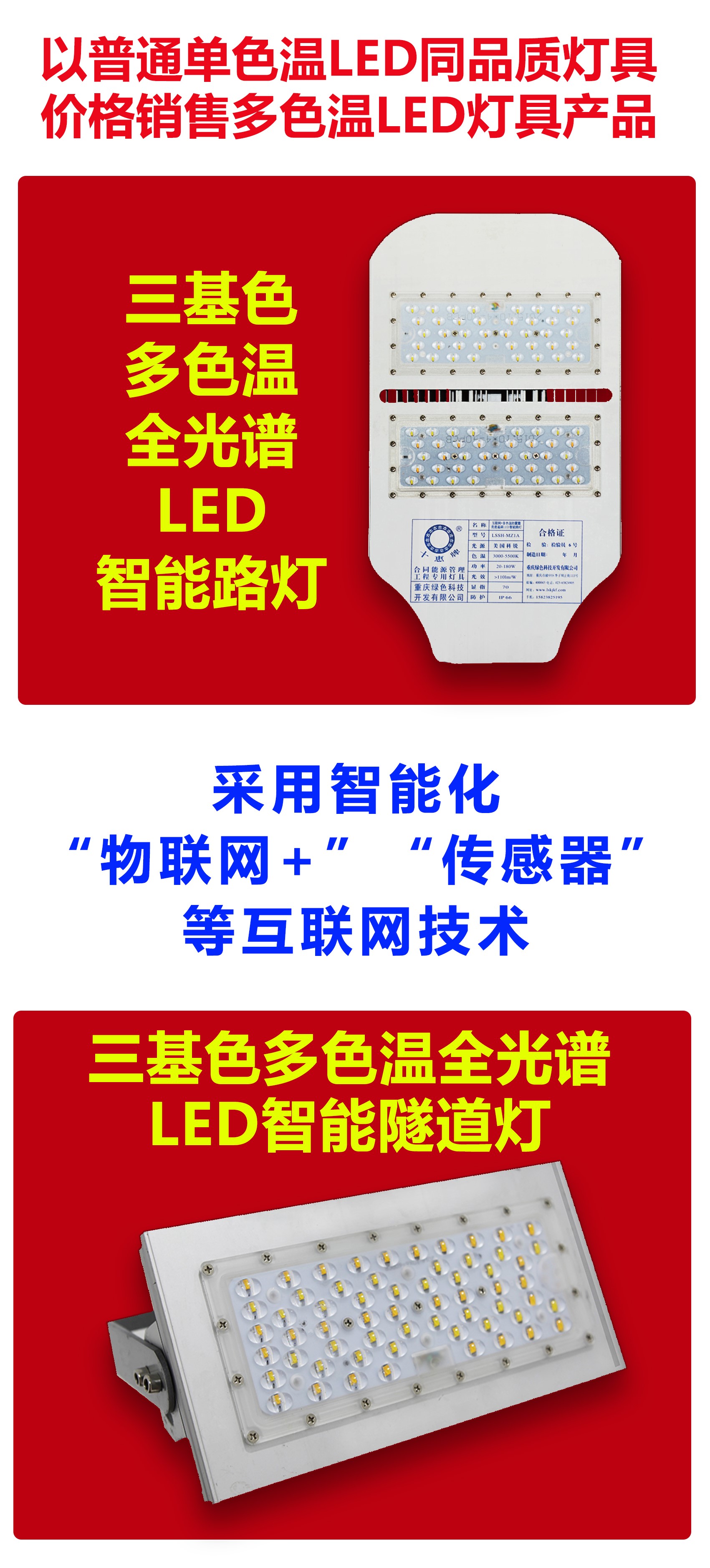 重慶“中國創造”三基色多色溫全光譜LED人工智能路燈技術特點介紹