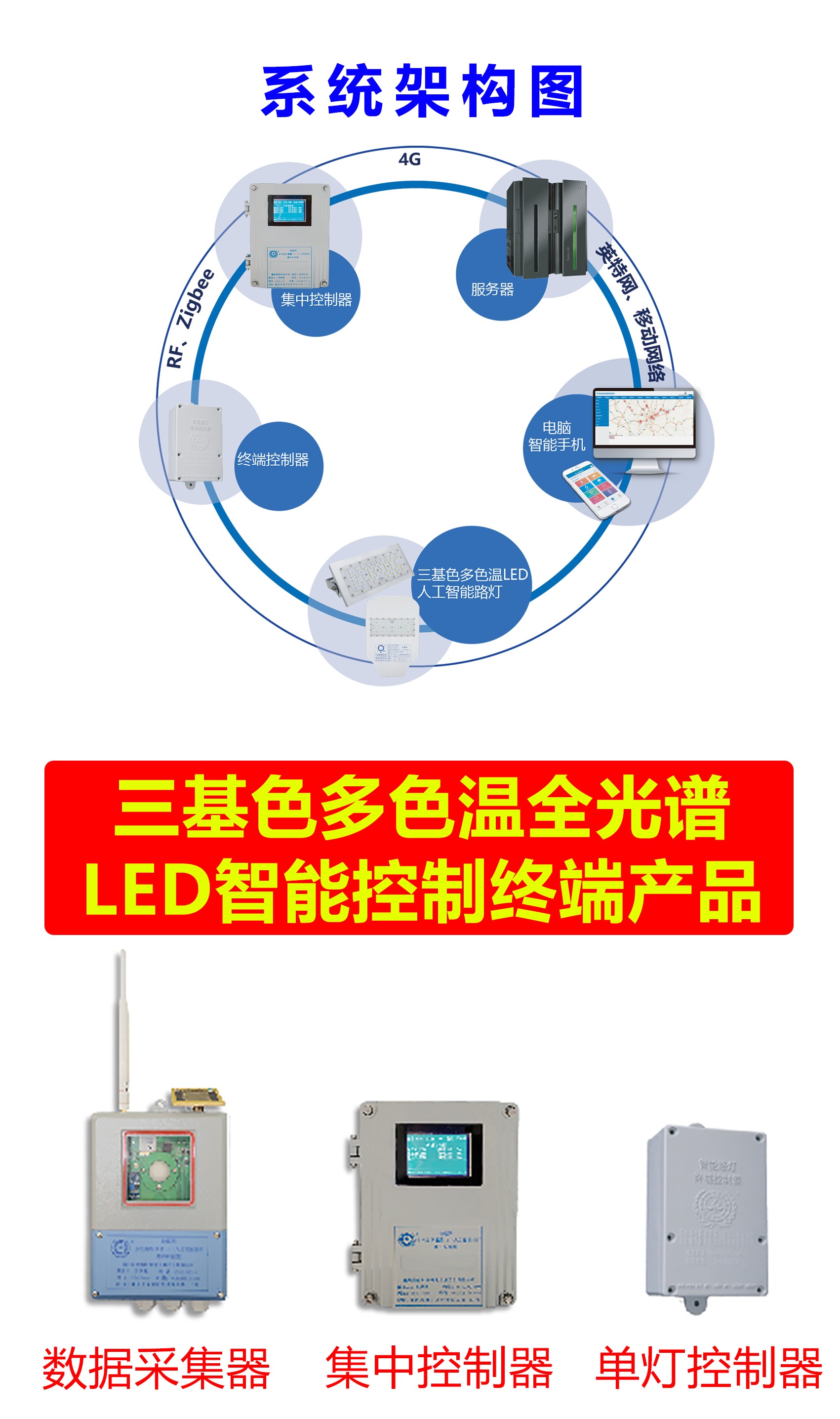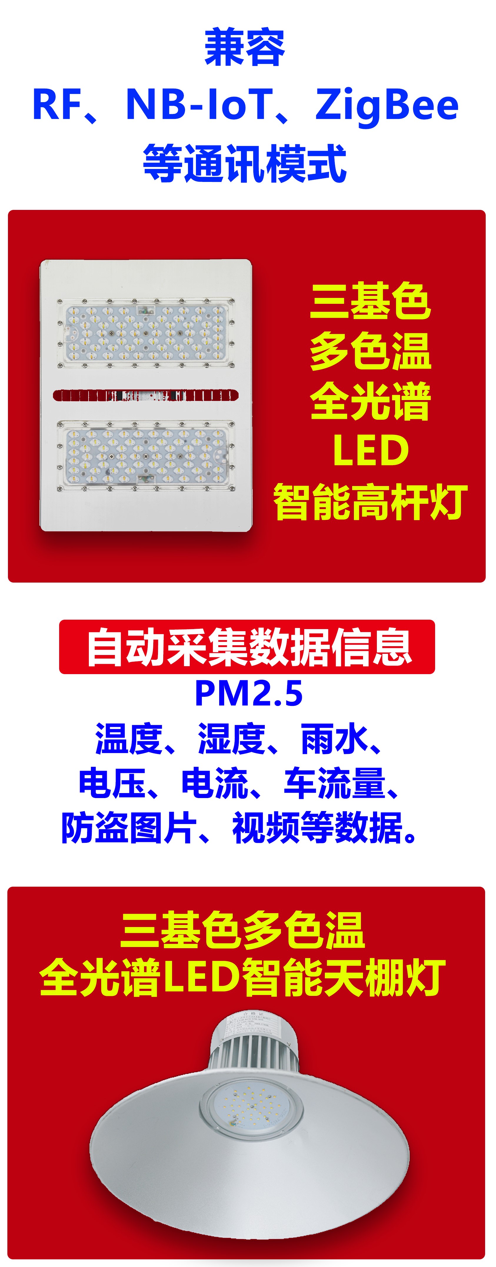 “智慧城市”城市照明燈飾四級考評管理共享平臺在兼具電力載波、Zigbee、RS485等傳統通信控制系統功能基礎上,搭載三基色多色溫全光譜LED人工智能路燈(以下簡稱該技術),可實現以下十大功能: